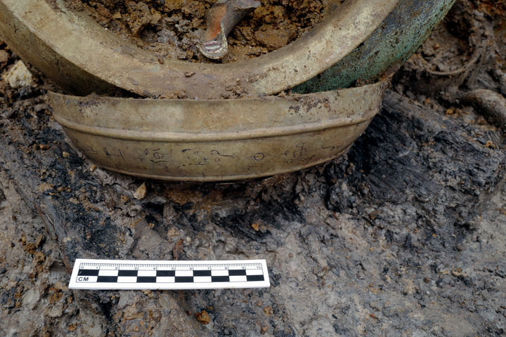 枣树林墓地出土的芈加缶及其铭文“楚王媵随仲芈加”。湖北省文物考古研究院供图