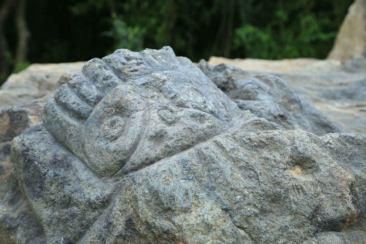 2015年,当地对神农部落旅游资源进行调查时,偶然发现了多处岩石上的凹穴。在桐柏山上竹林环绕的半山腰处,一块岩石上赫然可见一处形似人面像的岩画——“头顶”约有10条线状纹饰,组成“皇冠”的图案;面部的圆环和圆点,表示“双眼”;下部5条射线状纹饰,恰似“胡须”。这一长20厘米、宽27厘米的人面像,是随州发现的石器时期最为具象的岩画,被当地人称为“太阳神”,也有人称他为“炎帝神农像”。