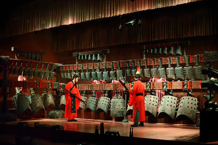 随州博物馆内的编钟乐舞演奏。在湖北省博物馆南馆东侧的“曾侯乙”展厅里,三层八组65件青铜编钟原件至今仅演出过3次,每一次都轰动中外。李文军摄