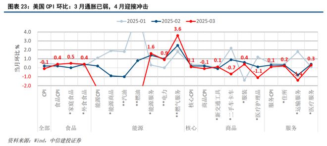 如图表23-图表25:1)美国今年1-3月的CPI通胀显示,新车和二手车、住房、运输等核心权重指标,均已连续走弱至当月环比0.1%水平或更低,基本反映了消费端已在走弱;2)1-3月的通胀拉动项主要是能源、电力和管道燃气等公共事业服务领域,即是由于冬季取暖的季节性因素,也反映了美国国内基础设施和公共服务的不足;3)如本文开篇第一节所述,美国经济的核心问题是内部治理需要改善,以民粹主义发动贸易战掩盖内部矛盾,无益于解决经济的实际问题。