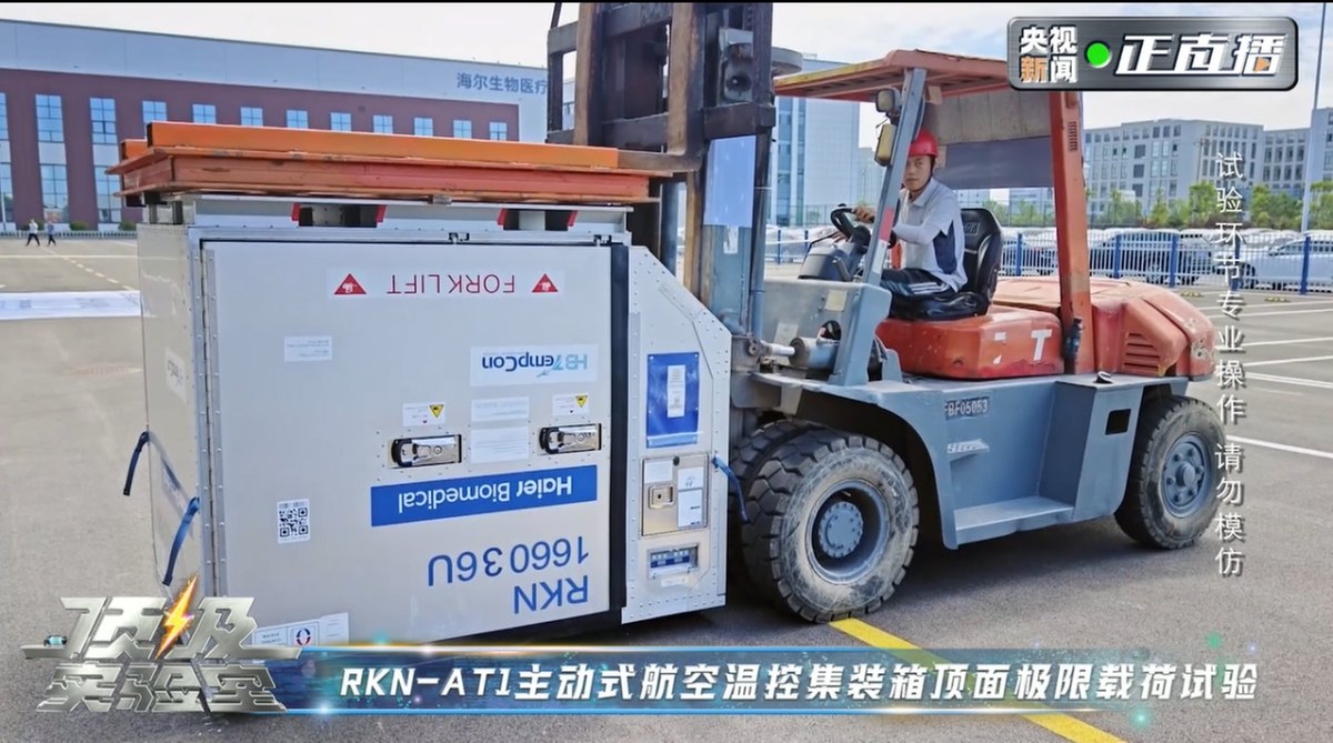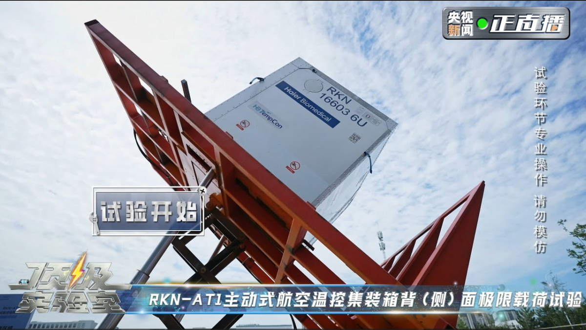 据了解,飞机遇到急速下坠、剧烈颠簸等情况时货物会对箱体产生冲击,要求箱体结构具有极高稳定性。根据相关技术标准规定的要求,集装箱的6个面都需要进行极限载荷试验,模拟飞行极端情况下温控集装箱的最大载荷能力,测试集装箱稳定性与可靠性。海尔主动式航空温控集装箱在“磕科团”见证下成功通过测试,展现科技“硬实力”。